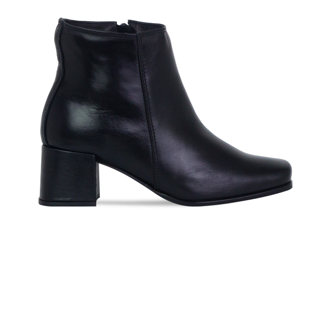 Bota Delli Couro Preto com Bico Quadrado e Salto Médio