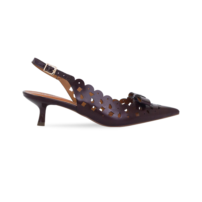 O Scarpin Slingback Glaucia une o charme do salto médio com uma estética super delicada e atual. Sua principal característica é o recorte vazado em formas geométricas no cabedal, que além de garantir um visual leve e moderno, traz um toque artesanal sofisticado. A borda ondulada adiciona feminilidade, enquanto o laço aplicado na parte frontal dá um ar romântico na medida certa.