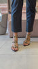 A Sandália Gianna é uma peça que combina sofisticação e personalidade. Seu design em couro traz como destaque os apliques metálicos circulares, que percorrem o peito do pé de forma marcante e elegante. O salto bloco de 5 cm, com formato levemente arredondado, garante conforto e estabilidade, tornando o modelo ideal tanto para o dia a dia quanto para produções mais sofisticadas à noite. Inspirada em referências de grifes como Chloé e Valentino, a Gianna é perfeita para composições que pedem um toque moderno e diferenciado. Use com vestidos fluidos em tons neutros para uma proposta elegante, combine com alfaiataria para um visual refinado ou até com jeans cropped para dar um contraste fashion ao look casual. Uma escolha certeira para quem busca estilo e conforto em uma única peça.