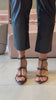 A Sandália Ivy é um modelo delicado e feminino que une conforto e sofisticação em cada detalhe. Seu design é marcado pelas tiras finas com laços aplicados, que criam um visual romântico e atemporal, remetendo ao estilo elegante de grifes como Miu Miu e Valentino. O salto bloco de 5 cm garante estabilidade sem abrir mão da elegância, enquanto o bico folha alonga a silhueta e valoriza o pé de forma sutil. Confeccionada em couro, traz qualidade e durabilidade para acompanhar você em diferentes ocasiões. Combine com vestidos leves para produções mais femininas, alfaiataria em tons neutros para um look moderno ou até mesmo com jeans reto para um visual casual chic. Uma peça versátil que transita perfeitamente do dia a dia ao jantar especial.
