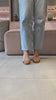A Sandália Quioto une minimalismo e impacto: tira frontal fina com aplicações de esferas e pulseira no tornozelo com o mesmo detalhe, que abraçam o pé com delicadeza. O salto bloco escultural de 5 cm oferece estabilidade e conforto por horas, enquanto o fechamento por fivela permite ajuste preciso. A base larga do salto e o contraforte estruturado deixam a pisada firme, sem perder leveza. Em versões monocromáticas e também com esferas de alto brilho, transita do trabalho ao evento sem esforço. Use com alfaiataria curta e blazer para um look elegante, com slip dress ou saias midi em ocasiões especiais, e com jeans reto + camisa para um visual moderno. A estética conversa com referências de grifes como Bottega Veneta (linhas puras) e Amina Muaddi (salto escultural), traduzidas aqui em uma sandália versátil e atual.