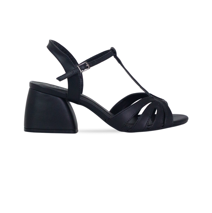 Sandálias Clarissa Preto com Salto Bloco e Tiras Fechadas