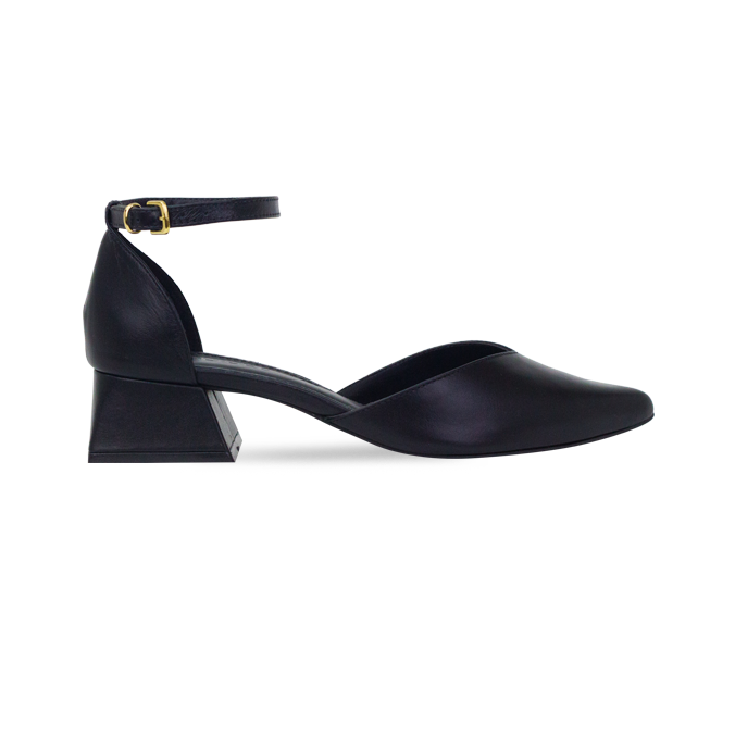 Seu salto bloco geométrico de 4 cm une modernidade e conforto, sendo perfeito para quem busca praticidade sem abrir mão da elegância.
