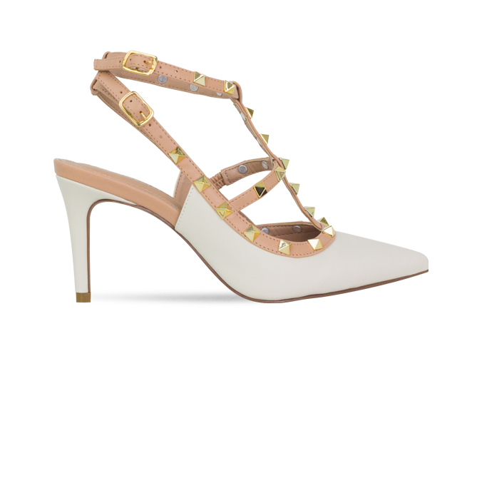 Scarpin Mona 8 Off White com Tiras e Pirâmides