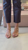 A Sandália Brenda High traz a elegância das tiras delicadas com aplicações em pirâmide, que aparecem em diferentes acabamentos metalizados, adicionando brilho e modernidade ao design. Na versão preta, o detalhe ganha um toque exclusivo: a pintura sólida no mesmo tom do cabedal, criando um visual monocromático sofisticado. O salto fino de 7 cm valoriza a silhueta, enquanto o bico folha reforça a feminilidade do modelo. Inspirada nas criações da Valentino, é uma peça versátil que transita do look de festa com vestidos de tecidos leves e fendas ousadas até produções mais urbanas, como alfaiataria em cortes retos ou jeans de lavagem clássica. Um verdadeiro curinga fashion para elevar qualquer composição.