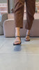 A Sandália Hortencia traz aquela estética minimalista que está dominando as coleções de marcas como Bottega Veneta e The Row, com tiras finas que cruzam o peito do pé, bico quadrado moderno e salto bloco de 6 cm com base levemente mais larga, que garante estabilidade sem abrir mão da elegância. O design com tira frontal reta e outra mais alta, combinado ao fechamento tipo slingback com fivela metalizada, desenha o pé de um jeito alongado e delicado, perfeito para quem quer um salto confortável para usar muitas horas. As versões neutras funcionam muito bem no dia a dia com jeans reto e camisa, conjuntos de alfaiataria, vestidos midi ou saias lápis para o trabalho, enquanto as opções metalizadas ganham destaque em produções de festa, casamentos, jantares e eventos noturnos, combinando com vestidos de seda, slip dress, macacões estruturados ou peças em linho para um visual sofisticado e atual.