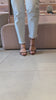 A Sandália Juliana com salto de 4 cm é daquelas que deixam o look elegante sem pesar: ela vem com bico folha e frente aberta, gáspea mais alta que abraça a frente do pé com recorte clean, laterais vazadas que alongam a silhueta, tira fina no peito do pé trazendo firmeza no caminhar e fechamento no tornozelo com fivela delicada, além do traseiro fechado que dá mais estabilidade. O kitten heel de 4 cm entrega altura na medida para usar por horas, do trabalho ao jantar, e funciona muito bem com alfaiataria (calça reta, colete e blazer), jeans de barra reta ou dobrada, saias midi e vestidos fluidos, inclusive em produções minimalistas com camisa branca e acessórios dourados. Na estética, ela conversa direto com a onda do “quiet luxury” que marcas como The Row, Khaite e Toteme vêm reforçando, e também com o retorno do bico quadrado visto em propostas bem limpas na linha da Bottega Veneta, ou seja: uma sandália atual, versátil e pronta para atravessar temporadas sem perder o charme.