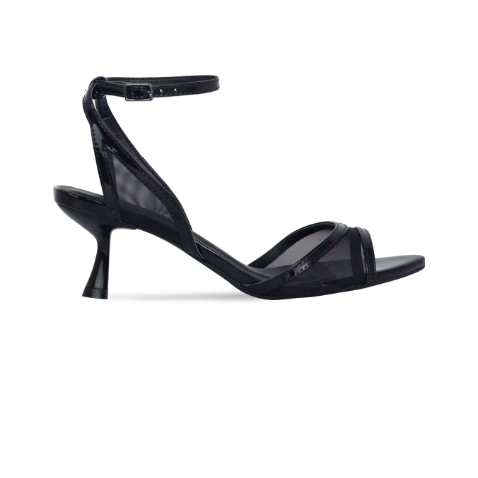 Sandálias Brittany Preto com Tela e Salto Médio de 5 cm