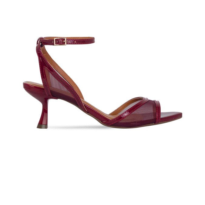 Sandálias Brittany Vinho com Tela e Salto Médio de 5 cm