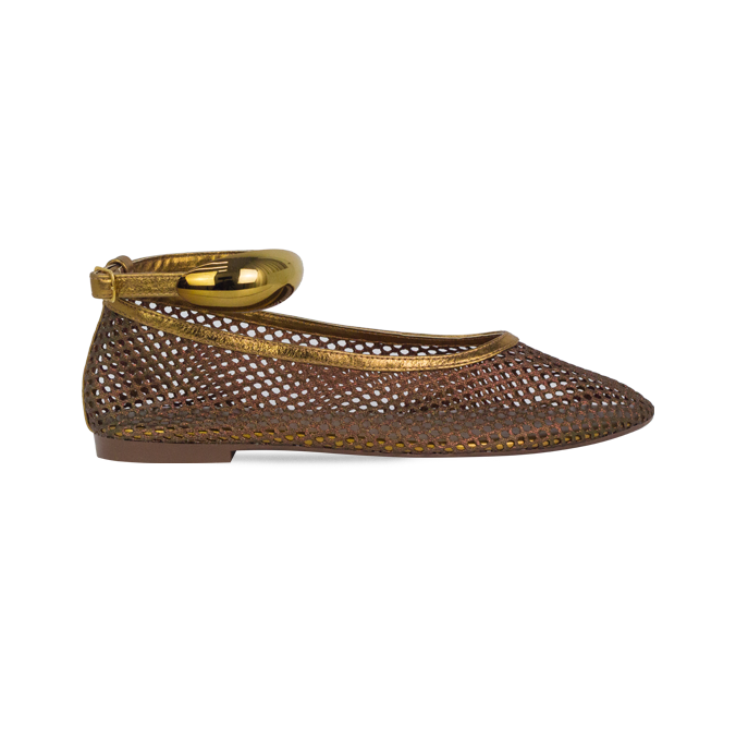 Tela vazada, shape refinado e um detalhe cromado que chama atenção na medida certa — a Sapatilha Paula é perfeita pra quem gosta de moda com personalidade. Ela transita bem entre o dia a dia e produções mais arrumadas, funcionando com vestidos fluidos, pantalonas de alfaiataria e até peças em couro. Um modelo que mistura leveza com o brilho metálico que está dominando os desfiles internacionais, como os da Bottega Veneta e Paco Rabanne.