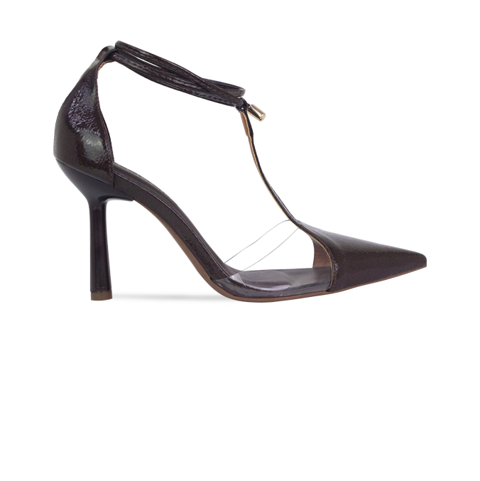 Scarpin Neiva Marrom com Vinil e Amarração – Sofisticação que se Destaca