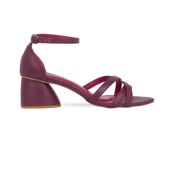 Sandália Diane Np Vinho em Couro com Salto Bloco