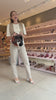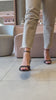 A Sandália Marcia com salto bloco de 8,5 cm é aquela escolha certeira pra ganhar altura com mais estabilidade: o cabedal tem tiras largas cruzadas na frente que valorizam o peito do pé e deixam o visual mais marcante, com frente aberta e bico arredondado, enquanto a tira no tornozelo com fivela permite ajustar bem o calce e dá mais segurança ao caminhar; o desenho é limpo e sofisticado, bem no mood minimalista que aparece nas coleções de The Row e Saint Laurent, com a leitura de tiras protagonistas que a Bottega Veneta vive trazendo pro radar, e funciona do office ao evento, combinando fácil com alfaiataria (calça reta, colete e camisa), vestido midi, saia acetinada com blusa de tecido leve, jeans reto com blazer ou um macacão estruturado, deixando o look atual, elegante e pronto em poucos minutos.