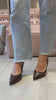 O scarpin Raira com salto de 8,5 cm é aquele clássico que muda o astral do look na hora: cabedal com textura croco bem marcada, recortes que valorizam o desenho do modelo e acabamento com relevo croco em alto-baixo que deixa tudo mais sofisticado, além do bico fino que alonga a silhueta e dá aquele efeito elegante sem esforço; o salto fino traz presença na medida certa pra trabalho, reunião, jantar e eventos, e fica perfeito com alfaiataria (calça reta ou pantalona + camisa), jeans de corte reto com blazer, vestido midi mais minimalista ou saia lápis, numa vibe que conversa com o ar polido que grifes como Saint Laurent, Prada e Bottega Veneta vêm mantendo nos scarpins de textura e linhas limpas.