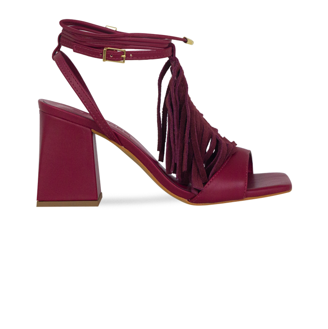 Sandálias Aline Vinho com Franjas e Amarração Versátil