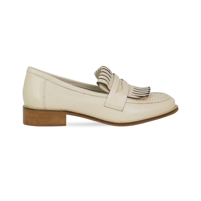 Mocassim Maura Off White: Detalhe em Franja e Couro Premium para o Inverno