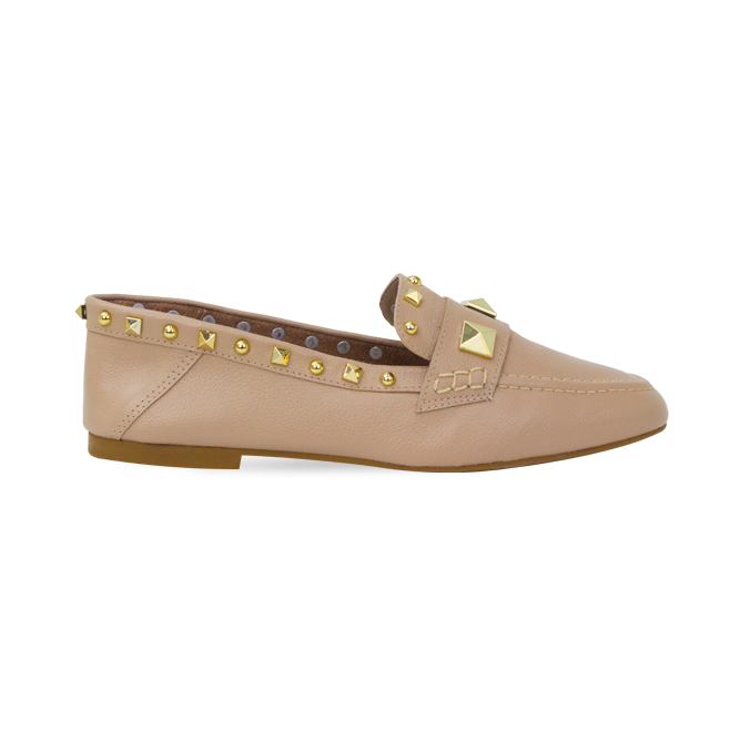 O Mocassim Alda combina conforto e estilo em uma proposta moderna e descomplicada. Com design clássico repaginado, o modelo é adornado por aplicações em formato de pirâmides metalizadas, que garantem personalidade e um toque sofisticado ao visual.