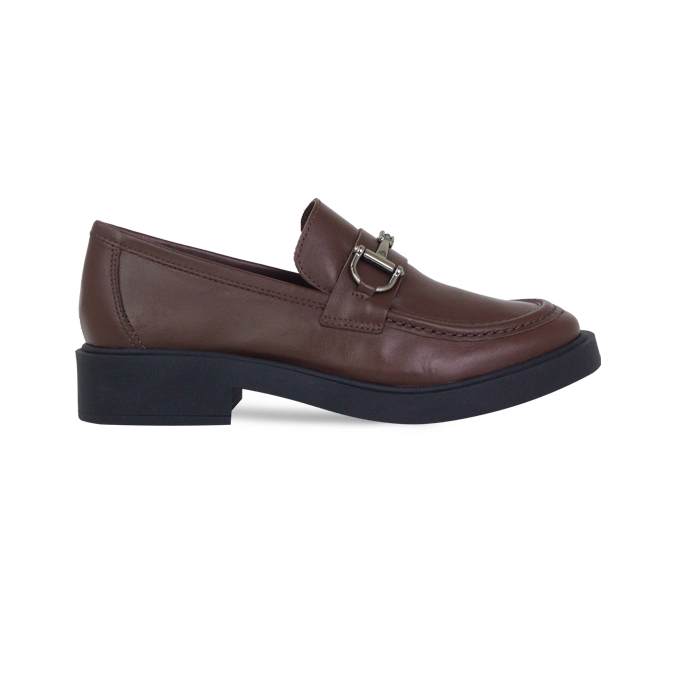 O modelo Claudia é a definição do clássico com atitude. Todo em couro, inclusive a palmilha, traz um visual sofisticado com toque contemporâneo graças ao detalhe de bridão. O solado robusto de 3 cm é tendência forte nas passarelas, aparecendo em coleções de marcas como Prada e Miu Miu, que vêm resgatando o mocassim com pegada urbana. Fica incrível com alfaiataria oversized, calças jeans retas ou até mesmo um vestido midi para um mix de estilos que funciona muito bem do escritório ao jantar com as amigas.