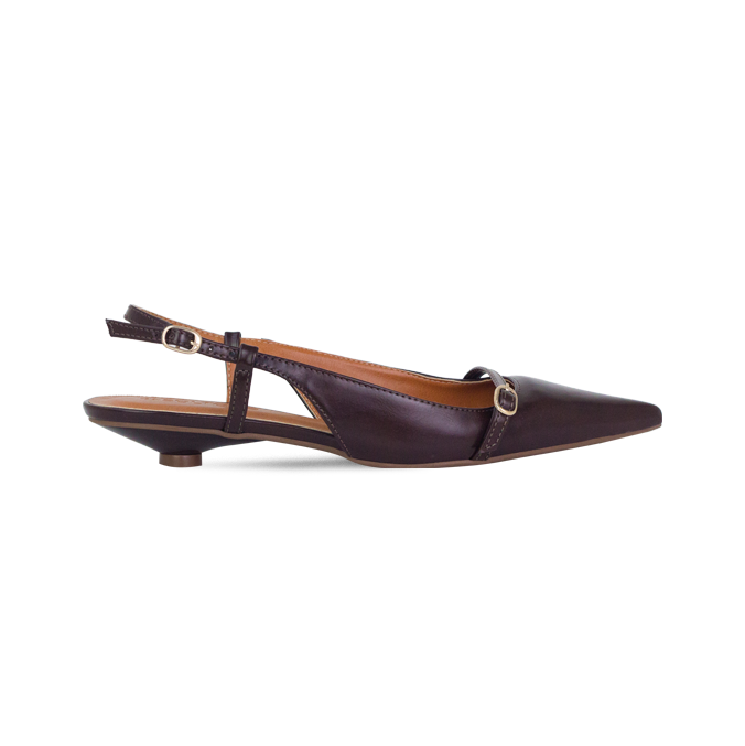 O modelo Jessie é uma aposta elegante e moderna, perfeita para quem busca conforto com sofisticação no dia a dia. Com salto baixo de 2cm e design slingback, ela traz recortes laterais que deixam o visual mais leve e atual. A tira fina com fivela na parte frontal adiciona um charme delicado e segura bem o pé, sem pesar. O bico fino alongado valoriza a silhueta e garante um toque refinado em qualquer produção.