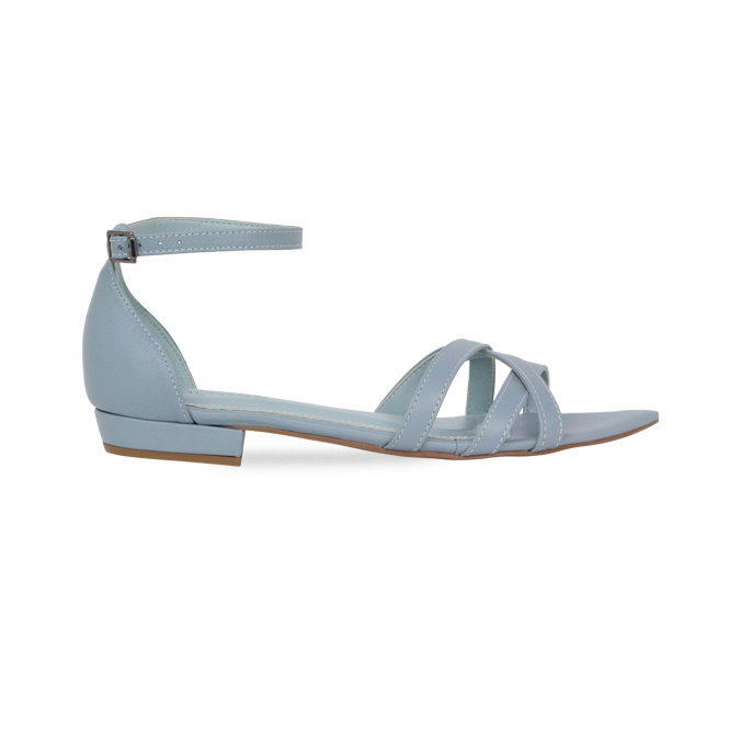 Rasteira Diane Flat Np Azul com Salto Baixo e Design Minimalista