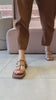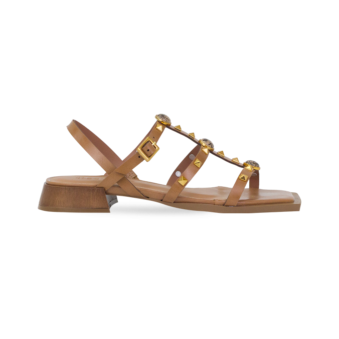 A Sandália Poliana é aquele modelo que transforma o look sem precisar de salto alto: com salto bloco de 2 cm e base estável com efeito amadeirado, ela garante conforto para o dia todo, enquanto as tiras finas abraçam o peito do pé e o calcanhar fica firme com a tira traseira ajustável por fivela lateral. O destaque fica para o desenho em T do cabedal, todo marcado por aplicações em tachas piramidais douradas e pedras em efeito natural, que lembram o mix boho-chic das coleções de Valentino, Isabel Marant e Chloé, trazendo informação de moda imediata mesmo nas produções mais simples. O bico quadrado atual deixa a silhueta moderna e alongada, perfeito para usar com vestidos fluidos, saias midi, conjuntos de linho, jeans reto ou alfaiataria leve, do office look ao fim de semana. Uma sandália versátil, com personalidade e visual de grife, pronta para acompanhar você em viagens, passeios ao ar livre ou aquele almoço que pede um toque fashion sem abrir mão do conforto.
