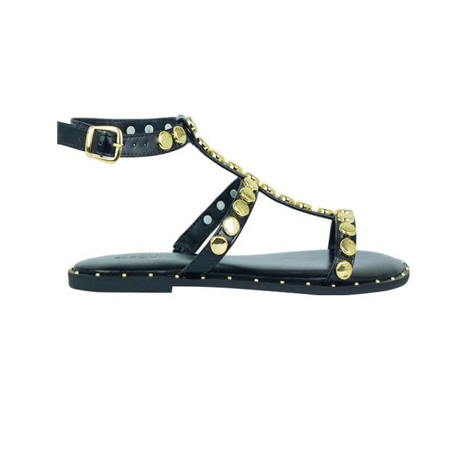 🌟 Rasteira Monica : elegância em cada detalhe! 👡✨ Com acabamento preto, aplicações douradas e salto baixo, ela é a escolha perfeita para quem busca um visual moderno e sofisticado. Combine estilo e conforto em qualquer ocasião! 🖤💛 #RasteiraLuana #EstiloEConforto #SaltareCalçados
