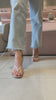 A Sandália Dandara com salto de 9 cm entrega aquele glamour moderno que parece simples de longe, mas de perto é puro design: acabamento metalizado dourado, tira de dedo com desenho em V que alonga o pé, laterais mais fechadas que dão sensação de firmeza e uma tira no tornozelo com fivela para ajustar direitinho; na base, o bico redondo com linhas suaves deixa o visual atual, e o salto escultural com pegada “passarela” faz a diferença no look sem precisar de mais nada, bem na linha do minimalismo chic que a gente vê em marcas como The Row e Gianvito Rossi, com toque de salto statement que lembra Amina Muaddi. Vai perfeita com alfaiataria (calça reta ou pantalona e blazer), vestido midi mais seco, saia acetinada, jeans reto com camisa bem alinhada ou até um conjunto monocromático para deixar o brilho do metalizado ser o protagonista, e funciona de festa a jantar, casamento, formatura e qualquer ocasião em que você quer entrar bem vestida e sair inesquecível.