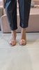 A Cintia é aquela sandália que entrega romantismo na medida certa. O aplique de flor em camadas na tira frontal dá o toque de moda, enquanto o salto baixo de 5 cm garante elegância com conforto para atravessar o dia – e a noite. O calcanhar estruturado e a pulseira no tornozelo com fivela ajustável dão estabilidade, e a frente aberta deixa o pé à mostra de forma delicada. Disponível em cores clássicas e também em versões metalizadas, transita fácil do escritório ao evento. A estética flerta com os florais de alta-costura vistos em desfiles como os de Dolce & Gabbana, em diálogo com o minimalismo elegante de marcas como Prada. Para vestir, combine com vestidos midi fluidos, saias de alfaiataria, macacões de tecido leve ou jeans reto com camisa para um hi-lo chic. Perfeita para casamentos civis, jantares, batizados e aniversários, quando você quer um toque feminino sem abrir mão de praticidade.