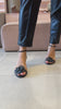 A Cintia é aquela sandália que entrega romantismo na medida certa. O aplique de flor em camadas na tira frontal dá o toque de moda, enquanto o salto baixo de 5 cm garante elegância com conforto para atravessar o dia – e a noite. O calcanhar estruturado e a pulseira no tornozelo com fivela ajustável dão estabilidade, e a frente aberta deixa o pé à mostra de forma delicada. Disponível em cores clássicas e também em versões metalizadas, transita fácil do escritório ao evento. A estética flerta com os florais de alta-costura vistos em desfiles como os de Dolce & Gabbana, em diálogo com o minimalismo elegante de marcas como Prada. Para vestir, combine com vestidos midi fluidos, saias de alfaiataria, macacões de tecido leve ou jeans reto com camisa para um hi-lo chic. Perfeita para casamentos civis, jantares, batizados e aniversários, quando você quer um toque feminino sem abrir mão de praticidade.