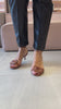 A Cintia é aquela sandália que entrega romantismo na medida certa. O aplique de flor em camadas na tira frontal dá o toque de moda, enquanto o salto baixo de 5 cm garante elegância com conforto para atravessar o dia – e a noite. O calcanhar estruturado e a pulseira no tornozelo com fivela ajustável dão estabilidade, e a frente aberta deixa o pé à mostra de forma delicada. Disponível em cores clássicas e também em versões metalizadas, transita fácil do escritório ao evento. A estética flerta com os florais de alta-costura vistos em desfiles como os de Dolce & Gabbana, em diálogo com o minimalismo elegante de marcas como Prada. Para vestir, combine com vestidos midi fluidos, saias de alfaiataria, macacões de tecido leve ou jeans reto com camisa para um hi-lo chic. Perfeita para casamentos civis, jantares, batizados e aniversários, quando você quer um toque feminino sem abrir mão de praticidade.