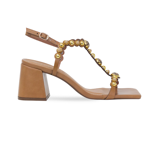 A sandália Taise é puro impacto visual na medida certa: o cabedal em formato T contorna o peito do pé com tiras finas adornadas por esferas metalizadas e aplicações arredondadas com efeito de pedra, criando aquele brilho sofisticado que a gente vê nas coleções de grifes como Aquazzura e Dolce & Gabbana. O salto bloco de 6 cm tem base levemente alargada, garantindo estabilidade e conforto para usar por horas, enquanto o bico quadrado atualiza o modelo e alonga a silhueta de um jeito moderno. A tira traseira com fivela ajustável abraça o calcanhar com segurança, deixando o pé bem firme mesmo em produções mais movimentadas. Versátil e ao mesmo tempo marcante, a Taise funciona tanto em tons neutros quanto em combinações mais vibrantes, transitando fácil do look do dia a dia ao visual de festa: use com vestidos fluidos midi, saias de alfaiataria, conjuntos de linho, jeans reto com camisa ou macacões sofisticados para deixar os detalhes em destaque. É aquela sandália statement que entra no closet para transformar qualquer produção básica em um look com presença de passarela.