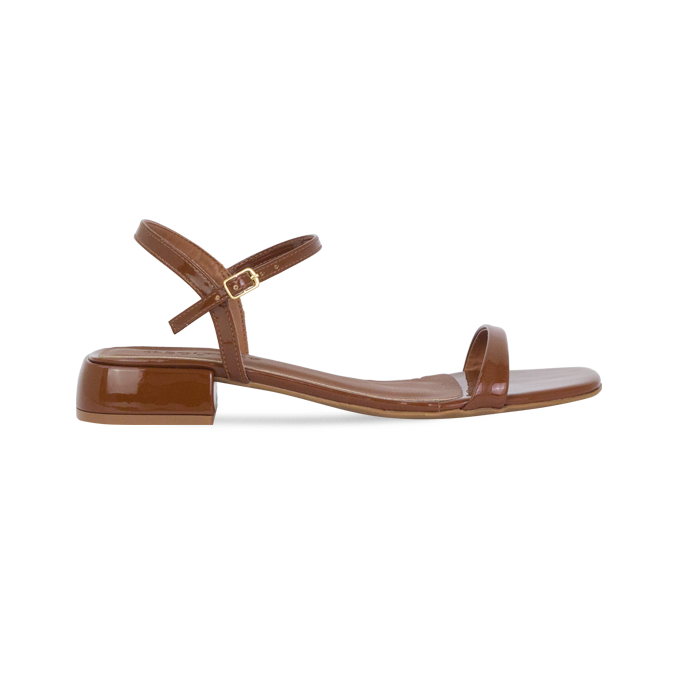 Sandália Regina Marrom com salto baixo e acabamento em verniz
