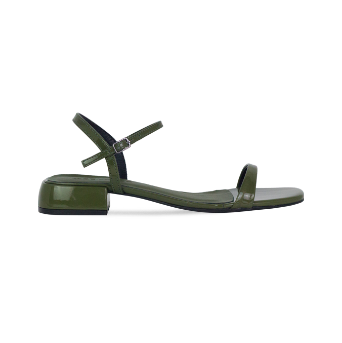Sandália Regina Verde com salto baixo e acabamento em verniz