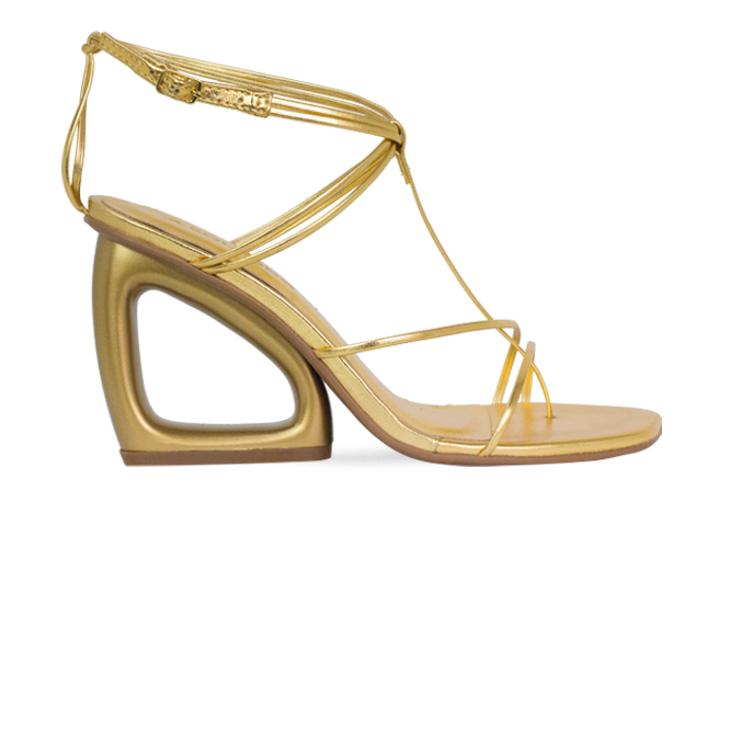 Sandálias Sandy Dourado com Tiras Finas e Salto Escultural