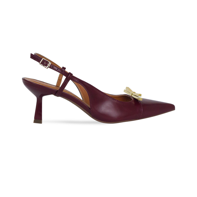 Scarpin Babi Vinho salto de 6cm e Laço Metálico