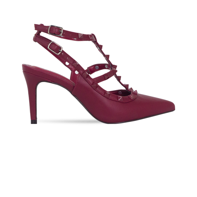 Scarpin Mona 8 Vinho com Tiras e Pirâmides