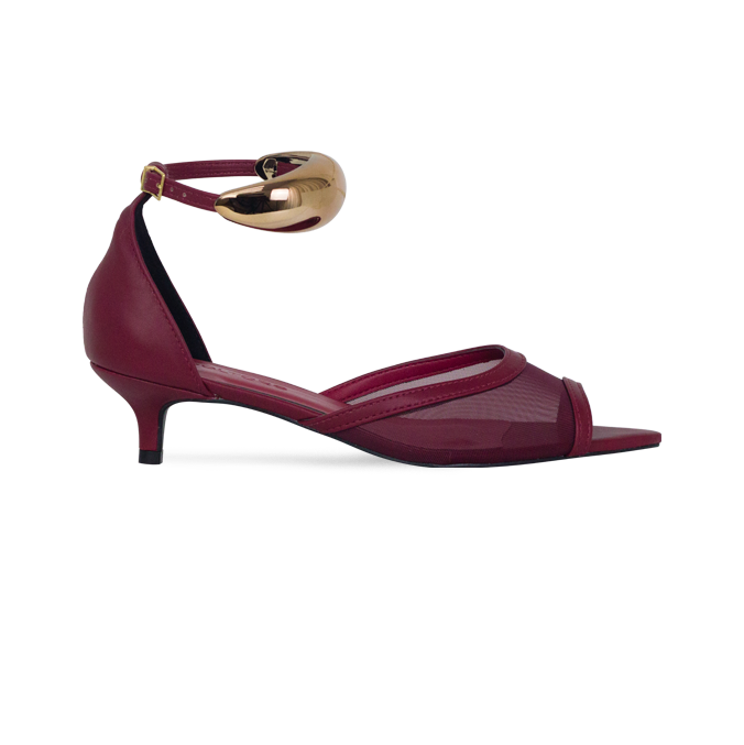 Sandálias Sara Vinho com Tela e Tornozeleira