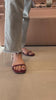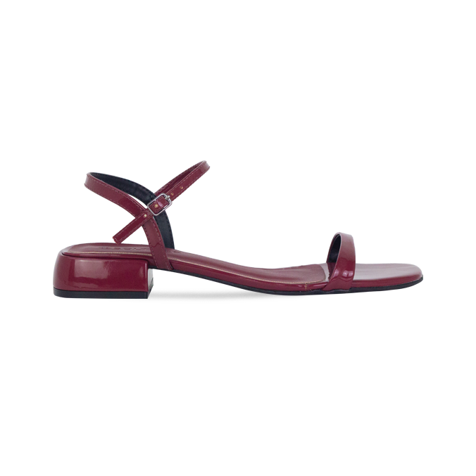 Sandália Regina Vinho com salto baixo e acabamento em verniz