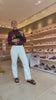 A Nilma com salto de 3,5 cm é aquela slide que entrega presença com um visual bem atual: tira larga e estruturada no cabedal, acabamento com textura croco (na tira e também nas laterais da base) e frente aberta com bico arredondado, tudo pensado pra dar impacto sem perder a praticidade do “calçou e foi”. A base flatform de 3,5 cm traz estabilidade e uma postura mais alinhada, enquanto a palmilha com aparência bem acolchoada deixa o caminhar mais confortável no dia a dia. Fica perfeita com alfaiataria leve (calça reta ou bermuda de corte), jeans de barra limpa, saia midi, vestido fluido ou conjunto monocromático, naquela linha de minimalismo chique que a gente vê em marcas como The Row e Toteme, com um toque de textura que conversa com o mood croco que aparece muito em Saint Laurent e Khaite.