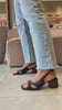 A Sandália Dara com salto bloco de 6 cm é aquela peça que entrega elegância com estabilidade: o desenho de tiras cruzadas na frente cria um visual atual, a frente aberta com bico quadrado deixa o look mais moderno e as costuras aparentes valorizam o acabamento, enquanto a tira traseira com fivela permite ajustar bem no calcanhar; o salto com aparência amadeirada equilibra a proposta e ajuda a encarar do trabalho ao jantar sem drama. Fica linda com alfaiataria (calça reta ou bermuda de corte limpo), jeans de barra reta, saia midi em tecidos fluidos, vestido slip e também com conjunto de linho, e a vibe minimal chic conversa direto com referências como The Row e Khaite, com aquele toque de design que lembra Bottega Veneta e Prada nas linhas mais limpas e no shape de bico quadrado.