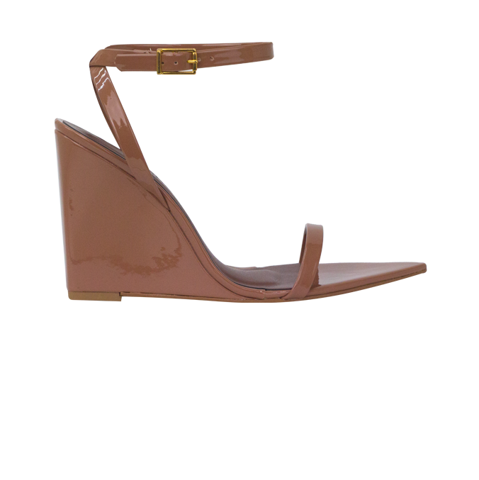 • Ela remete muito à ousadia geométrica e noturna da The Attico, conhecida por seus sapatos de bicos proeminentes e verniz vibrante.