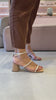 A Sandália Lívia traz o minimalismo das passarelas para o dia a dia com seu desenho de tiras finas, que deixam o peito do pé à mostra, bico quadrado moderno e salto bloco de 6 cm com base mais larga, garantindo estabilidade e conforto mesmo em muitas horas de uso. O tornozelo é contornado por uma tira delicada com fechamento em fivela, que abraça o pé e dá segurança ao caminhar, enquanto as diferentes versões do modelo – que vão de acabamentos lisos a combinações metalizadas, coloridas e até com base em cortiça, de textura natural – deixam você escolher o mood da produção, do look de trabalho ao fim de semana. É o tipo de sandália que conversa com as referências de marcas como Bottega Veneta e Prada, unindo linhas simples e sofisticadas, e funciona tanto com vestidos fluidos ou saias midi quanto com calças de alfaiataria, jeans reto ou conjuntos de linho, sempre acrescentando um toque de moda sem abrir mão do conforto.