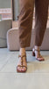 A sandália Taise é puro impacto visual na medida certa: o cabedal em formato T contorna o peito do pé com tiras finas adornadas por esferas metalizadas e aplicações arredondadas com efeito de pedra, criando aquele brilho sofisticado que a gente vê nas coleções de grifes como Aquazzura e Dolce & Gabbana. O salto bloco de 6 cm tem base levemente alargada, garantindo estabilidade e conforto para usar por horas, enquanto o bico quadrado atualiza o modelo e alonga a silhueta de um jeito moderno. A tira traseira com fivela ajustável abraça o calcanhar com segurança, deixando o pé bem firme mesmo em produções mais movimentadas. Versátil e ao mesmo tempo marcante, a Taise funciona tanto em tons neutros quanto em combinações mais vibrantes, transitando fácil do look do dia a dia ao visual de festa: use com vestidos fluidos midi, saias de alfaiataria, conjuntos de linho, jeans reto com camisa ou macacões sofisticados para deixar os detalhes em destaque. É aquela sandália statement que entra no closet para transformar qualquer produção básica em um look com presença de passarela.