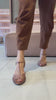 A sandália Ynara tem salto anabela de 7 cm com base mais ampla, trazendo aquela estabilidade que dá confiança no caminhar sem perder elegância, e um desenho de tiras finas em leque na parte frontal que abraça o pé com leveza, deixando a produção mais interessante mesmo quando o look é básico; a tira central em formato “T” alonga visualmente e conecta com o fechamento no tornozelo por fivela ajustável, garantindo firmeza e um acabamento bem alinhado. É o tipo de modelo que conversa com o minimalismo chique que grifes como The Row e Saint Laurent adoram, mas com a sensualidade moderna que aparece nas propostas de Jacquemus, e funciona tanto em versões mais neutras quanto em acabamentos metalizados para dar aquele brilho de noite. Use com vestido slip, conjuntos de linho, saia midi (reta ou plissada), pantalona de alfaiataria, jeans reto com camisa, ou até um blazer oversized com short mais estruturado, indo do trabalho ao jantar e também em eventos onde você quer conforto com cara de look pensado.