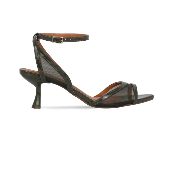 Sandálias Brittany Verde com Tela e Salto Médio de 5 cm