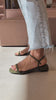Sandália Regina Verde com salto baixo e acabamento em verniz