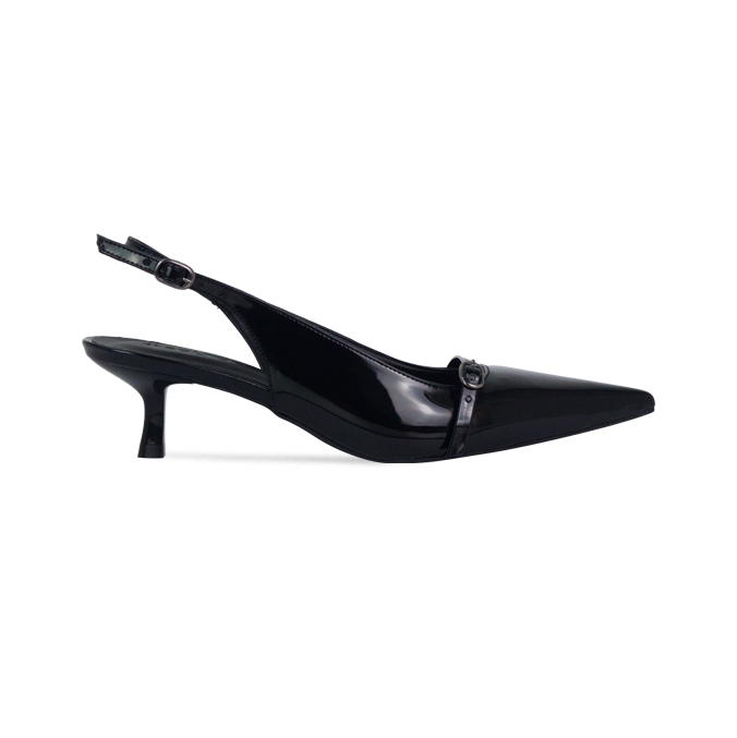 O modelo Carol, com acabamento em verniz e salto de 5 cm, traz uma leitura sofisticada do scarpin slingback. A tira com fivela na frente dá aquele charme discreto e atual, perfeito pra quem quer um calçado que une elegância e praticidade. Vai bem com calças de alfaiataria, saias midi e até jeans reto com blazer. Referência de estilo? Loewe e Prada têm apostado forte no verniz como ponto de brilho nos looks da estação.