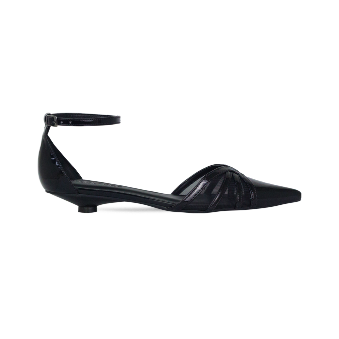 Se você ama sapatos estilosos que funcionam do trabalho ao jantar, o Rachel é perfeito. Ele tem aquele toque fashionista com tiras em verniz e detalhe em tela transparente, uma estética que apareceu com força nas passarelas da Valentino. O salto baixo deixa o visual moderno e confortável. Combine com saias fluidas, pantalonas ou um conjunto de alfaiataria em estilo casual chic.