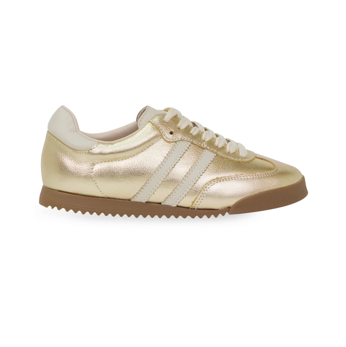 O Tênis Helen em couro entra naquela linha retrô que deixa qualquer look mais interessante sem esforço: silhueta baixa, bico redondo, recortes bem marcados com costuras aparentes e as listras laterais que dão identidade na hora, além do solado emborrachado estilo gum com base serrilhada que segura bem no dia a dia; o fechamento por cadarço ajuda a ajustar firme no pé e o forro todo espumado entrega uma sensação mais macia por dentro, ótimo para quem passa horas fora de casa. Combina fácil com alfaiataria relax (calça reta e blazer), jeans de lavagem clássica, conjunto de moletom mais alinhado, saia midi plissada ou vestido de malha com trench, nessa mesma onda dos “terrace sneakers” que voltaram com força no styling das grifes e do street style, lembrando a pegada esportiva-chic que aparece em propostas da Miu Miu, Prada e Gucci.