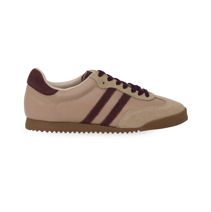 O Tênis Helen em couro entra naquela linha retrô que deixa qualquer look mais interessante sem esforço: silhueta baixa, bico redondo, recortes bem marcados com costuras aparentes e as listras laterais que dão identidade na hora, além do solado emborrachado estilo gum com base serrilhada que segura bem no dia a dia; o fechamento por cadarço ajuda a ajustar firme no pé e o forro todo espumado entrega uma sensação mais macia por dentro, ótimo para quem passa horas fora de casa. Combina fácil com alfaiataria relax (calça reta e blazer), jeans de lavagem clássica, conjunto de moletom mais alinhado, saia midi plissada ou vestido de malha com trench, nessa mesma onda dos “terrace sneakers” que voltaram com força no styling das grifes e do street style, lembrando a pegada esportiva-chic que aparece em propostas da Miu Miu, Prada e Gucci.